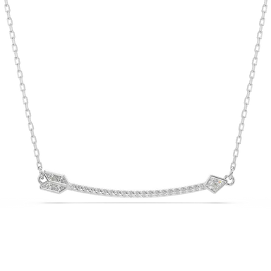 Inspired by Cupid’s arrow of love, this rhodium plated necklace is a unique styling choice. The central silhouette is suspended from a delicate cha...