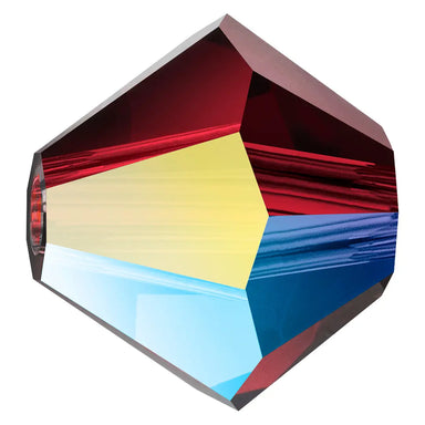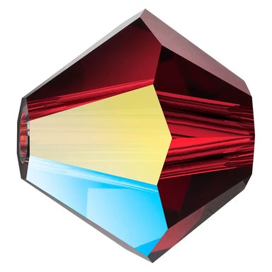 Preciosa crystal beads Bicone in Vivid Siam AB 2X have a smooth thread hole and are multi-faceted to reflect the light, making them perfect to crea...