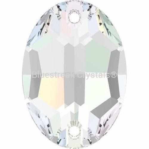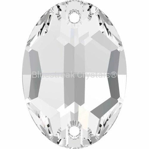 Serinity Oval shaped crystals are elongated and oval in shape, similar to an egg. They have two rounded sides and are faceted to create a multi-dimensional effect, with the two sewing holes at the narrow ends.