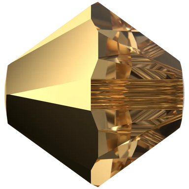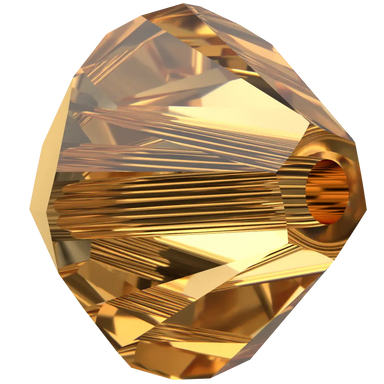 Swarovski crystal beads Xilion Bicone (5328) in Crystal Aurum X2 have a smooth thread hole and are multi-faceted to reflect the light, making them ...