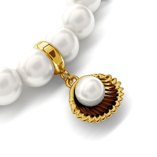 This gold plated (24k) Shell Half Drilled bail is made from Sterling Silver (925) and has a small loop at the top for attaching to a chain or finding, and a small post inside the shell to attach to the bead or pearl.