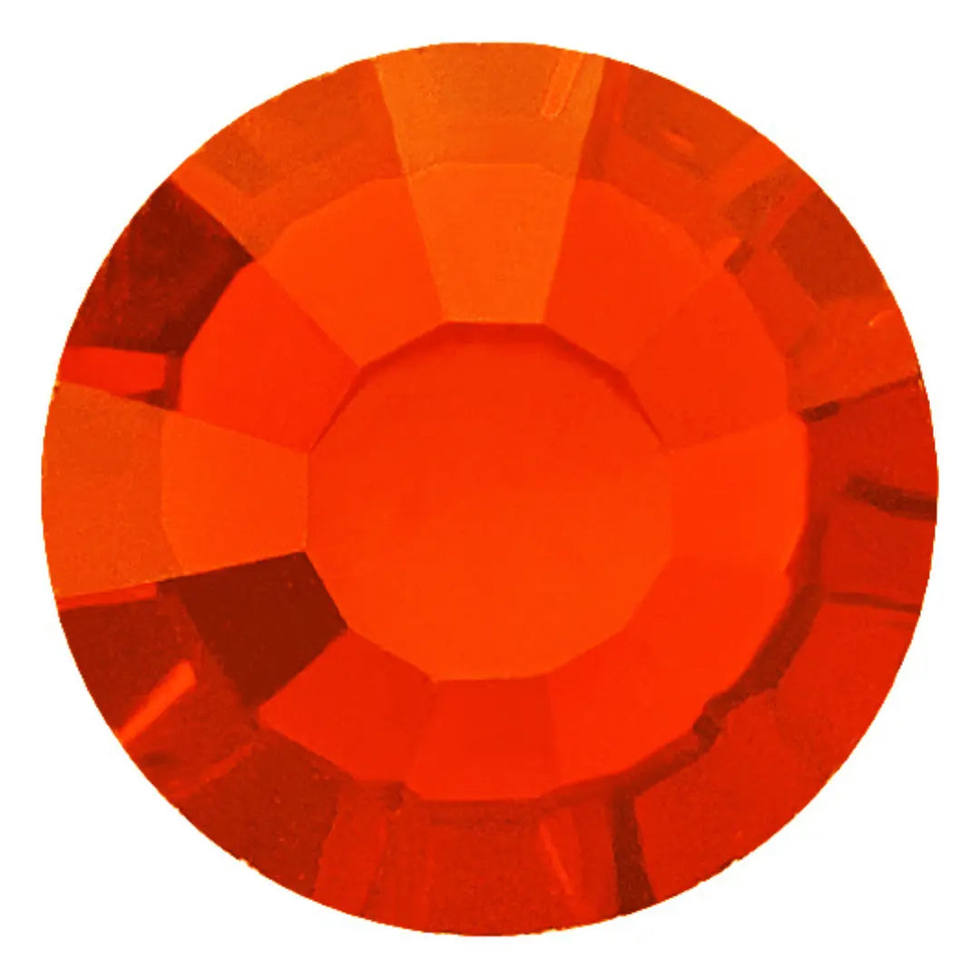 Estella rhinestones non hotfix round in Hyacinth are flat back crystals that can easily be applied to most surfaces with glue. Hyacinth is a rich and intense shade of orange with hints of red and brown. It is named after the hyacinth flower, which can also come in a range of orange hues. It is a warm and vibrant colour that evokes feelings of energy, passion, and enthusiasm. Hyacinth is a bold and attention-grabbing colour that can be used to make a statement or add a pop of colour to any design or outfit.
