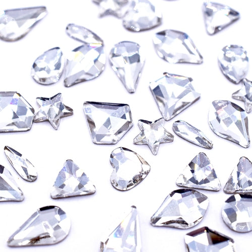 Estella rhinestones Crystal AB Shape mix contains a variety of round flat back crystals in a variety of shapes. Popular with nail technicians and embellishment artists, this mix is a cost effective way to purchase a selection of different crystals.