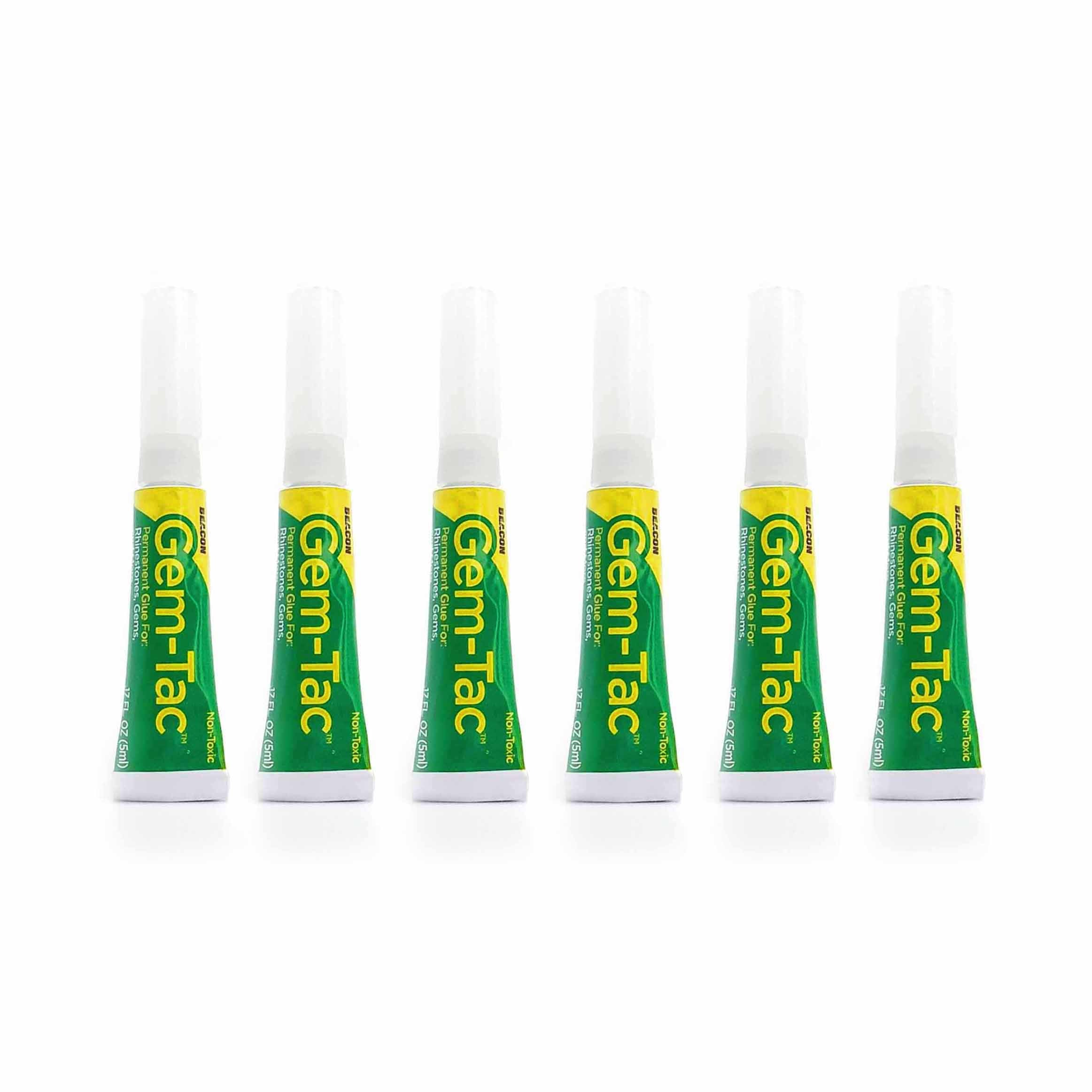 Beacon Gem-Tac jewellery glue is specifically formulated to secure flat back crystals and Rhinestones. This 5ml tube is available as pack of one or as a pack of 6 and is one of the only adhesives that is suitable for applying mirror backed stones as it dries clear and does not alter the appearance of the rhinestones.