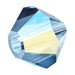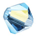 Preciosa crystal beads Bicone in Malibu Blue AB have a smooth thread hole and are multi-faceted to reflect the light, making them perfect to create bespoke designs. Preciosa Bicone Beads have a cylindrical shape and taper towards both ends to create a unique bi-conical shape. The multi-faceted surface of these beads, which narrows towards each end, adds texture, depth, and sparkle to different jewellery and custom-made designs.