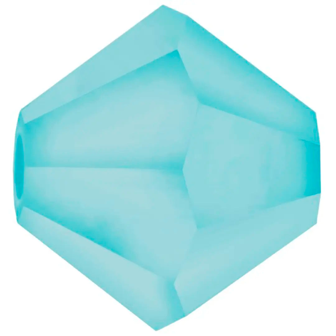 Preciosa crystal beads Bicone in Aqua Bohemica Matte have a smooth thread hole and are multi-faceted to reflect the light, making them perfect to create bespoke designs. Preciosa Bicone Beads have a cylindrical shape and taper towards both ends to create a unique bi-conical shape. The multi-faceted surface of these beads, which narrows towards each end, adds texture, depth, and sparkle to different jewellery and custom-made designs.