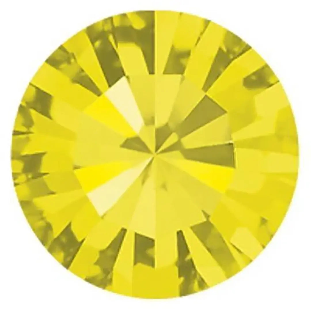 Preciosa chatons Round in Citrine are multi faceted pointed back crystals that are used with metal settings to create bespoke jewellery and embellishment designs. Preciosa round chatons have a pointed back and flat top and can be used in a variety of creative projects. They are highly versatile and can be mounted onto metal settings or attached to surfaces such as fabrics or plastics to create a stunning look with their brilliant shine and sparkle.