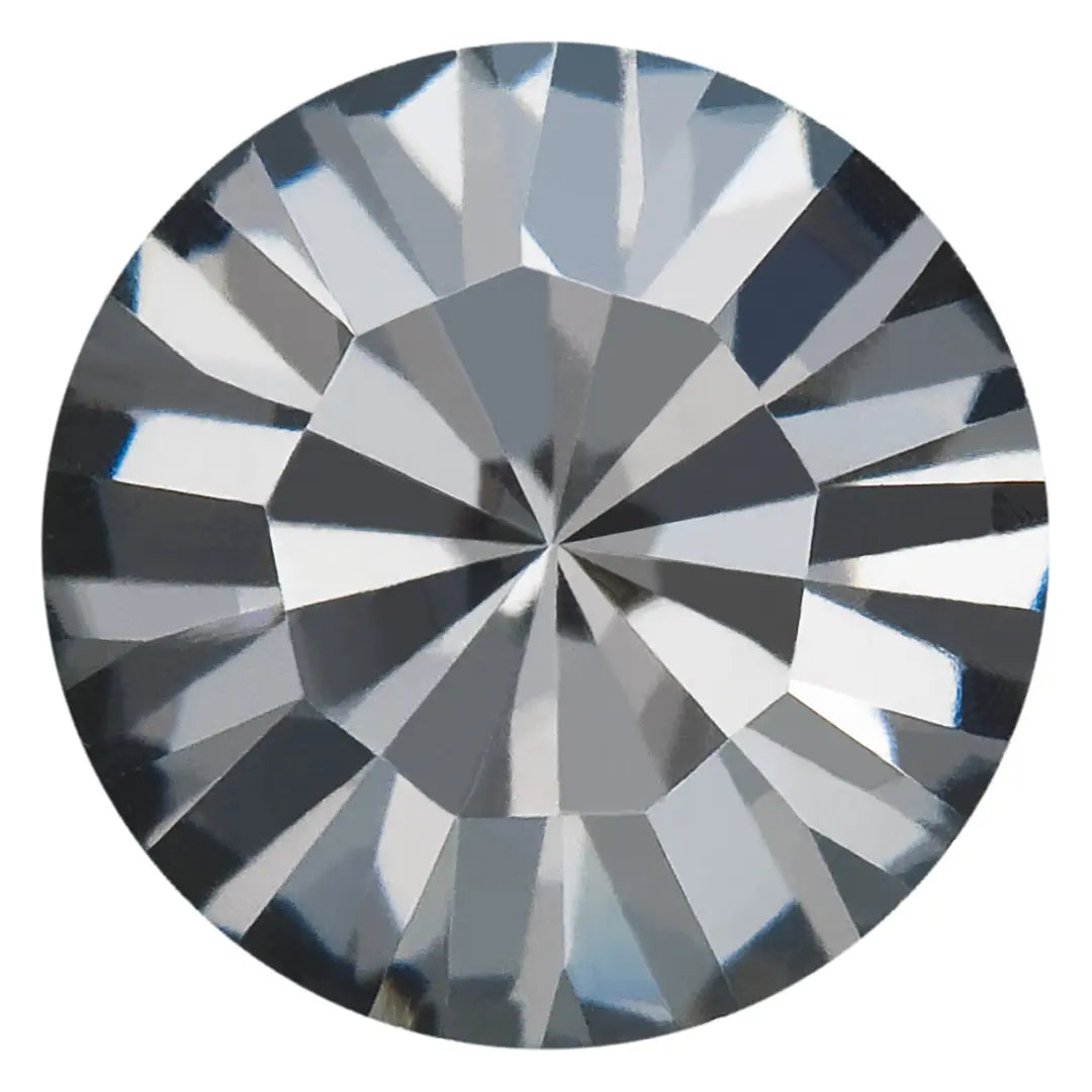 Preciosa chatons Round in Crystal Nightfall are multi faceted pointed back crystals that are used with metal settings to create bespoke jewellery and embellishment designs. Preciosa round chatons have a pointed back and flat top and can be used in a variety of creative projects. They are highly versatile and can be mounted onto metal settings or attached to surfaces such as fabrics or plastics to create a stunning look with their brilliant shine and sparkle.