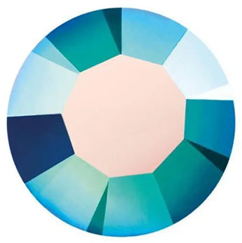 Preciosa chatons Round in Crystal Peacock Green are multi faceted pointed back crystals that are used with metal settings to create bespoke jewellery and embellishment designs. Preciosa round chatons have a pointed back and flat top and can be used in a variety of creative projects. They are highly versatile and can be mounted onto metal settings or attached to surfaces such as fabrics or plastics to create a stunning look with their brilliant shine and sparkle.