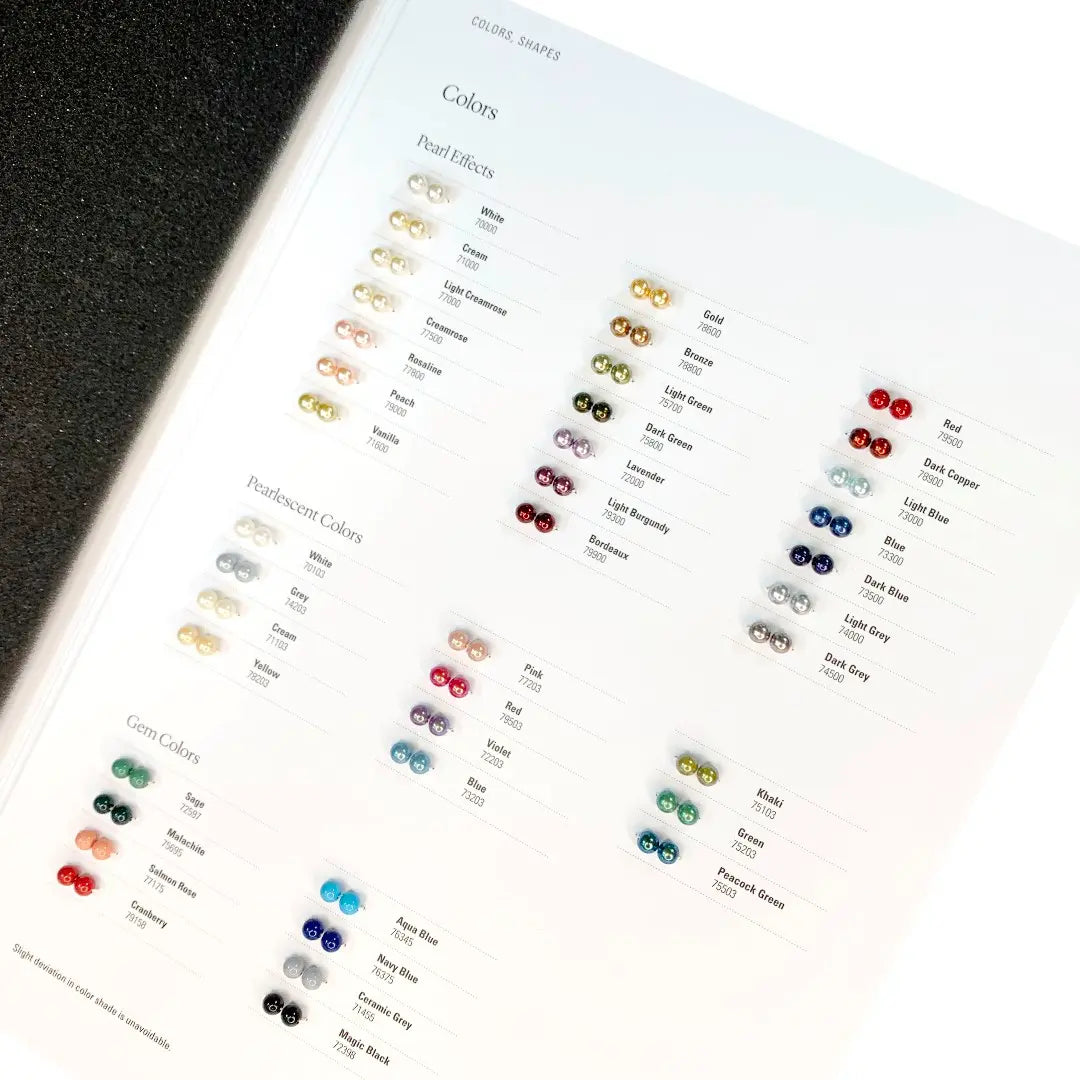 This Preciosa Crystal Pearl colour chart shows all the colours available in the Preciosa Crystal Pearls range.