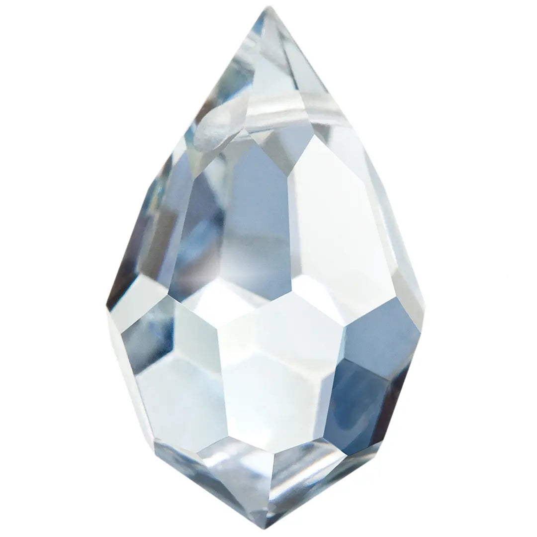 Preciosa pendants Drop 681 in Crystal are multi faceted crystals with a thread hole at the top enabling them to be attached to a chain or finding to create a piece of jewellery. Preciosa drop shaped crystals are designed in a distinctive teardrop shape, with a smaller tapered top and wider bottom resembling a water droplet or tear.