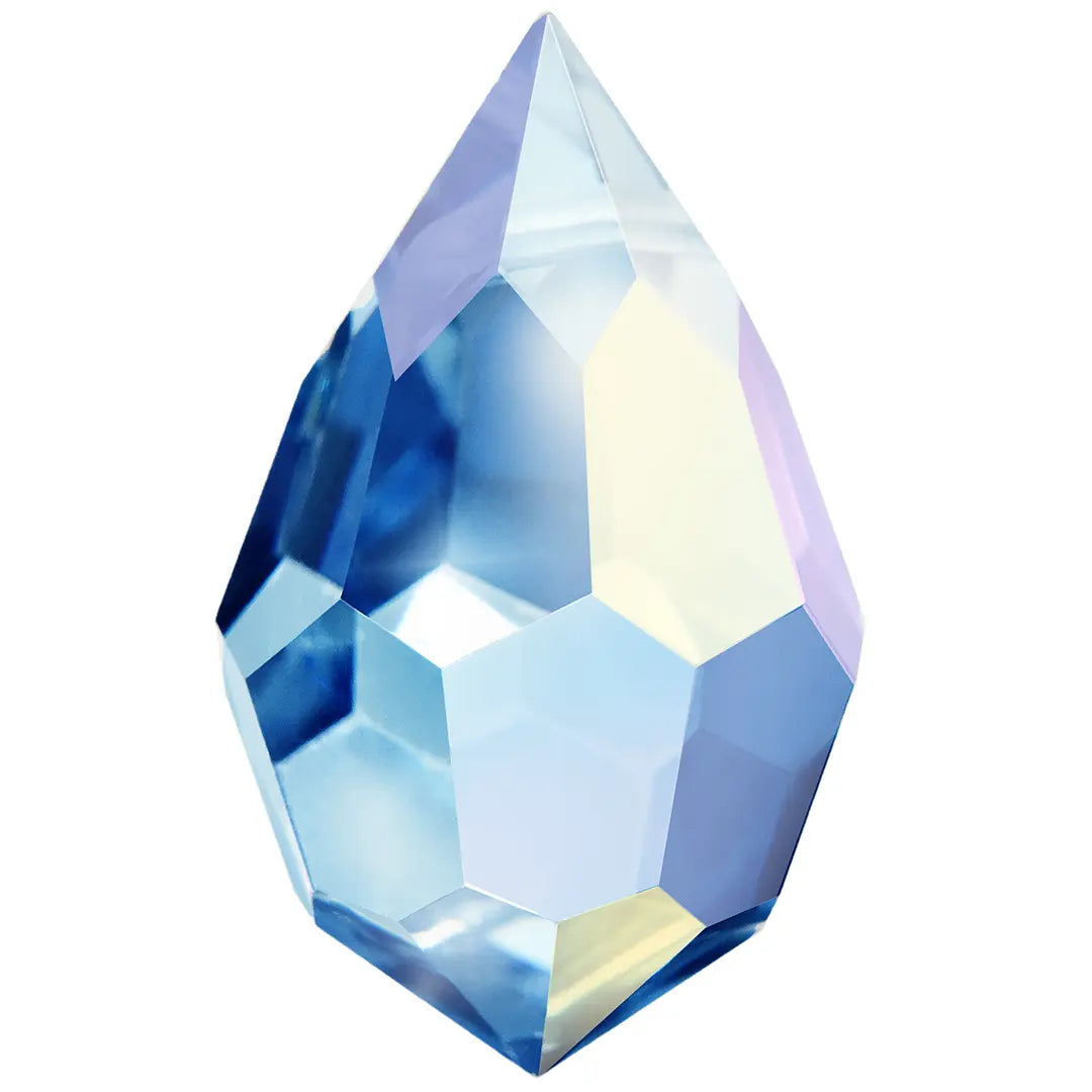 Preciosa pendants Drop 681 in Sapphire AB are multi faceted crystals with a thread hole at the top enabling them to be attached to a chain or finding to create a piece of jewellery. Preciosa drop shaped crystals are designed in a distinctive teardrop shape, with a smaller tapered top and wider bottom resembling a water droplet or tear.