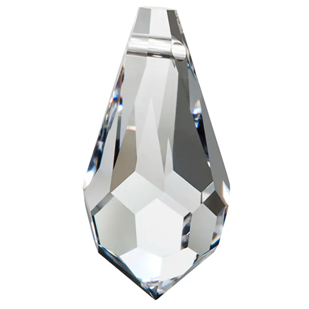 Preciosa pendants Drop 984 in Crystal are multi faceted crystals with a thread hole at the top enabling them to be attached to a chain or finding to create a piece of jewellery. Preciosa Drop shaped crystals are designed in a distinctive teardrop shape, with a smaller tapered top and wider bottom resembling a water droplet or tear.