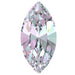 Preciosa fancy stones Navette in Crystal AB are multi faceted pointed back crystals that have no thread hole and can be applied to fabric or to create jewellery designs using metal settings or in pre-made cavities. Preciosa navette shaped crystals have an elongated and pointed shape at both ends, resembling a narrow leaf or an almond, hence the name "navette" which is derived from the French word for "little boat". The flat top surface of the crystal is surrounded by bevelled edges that catch and reflect light, creating a brilliant and sparkling effect that enhances the overall appearance of the crystal.