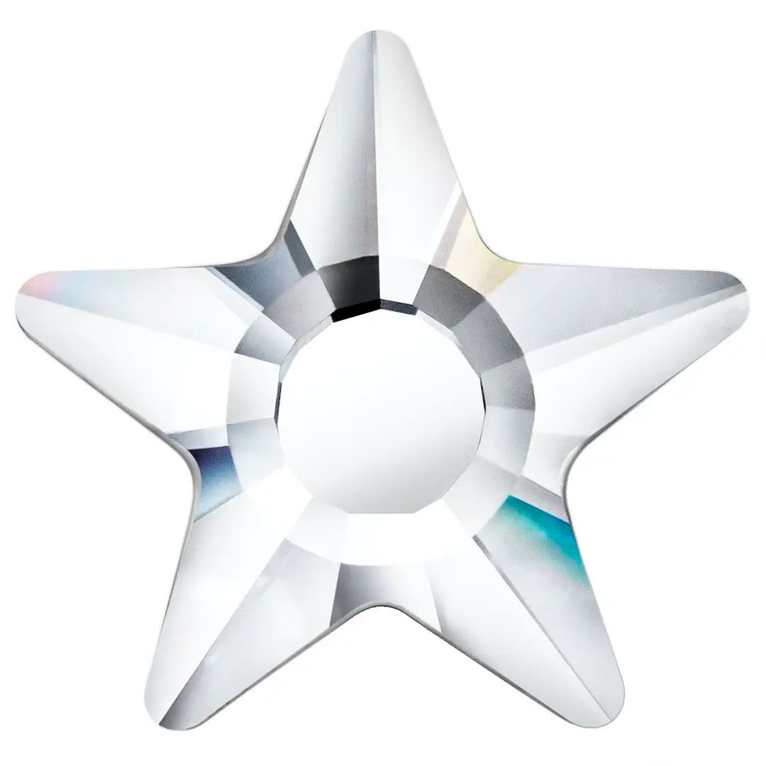 Preciosa rhinestones non hotfix Star in Crystal are flat back crystals that can easily be applied to most surfaces with glue. Preciosa Star shaped crystals interpret the classic star aymbol with a refined and contemporary character. Defined by balanced geometry and a clean silhouette, the design captures light in a controlled yet expressive way. The precision-cut facets enhance light reflection, producing a bright, elegant sparkle that works beautifully for both subtle accents and standout decorative details.