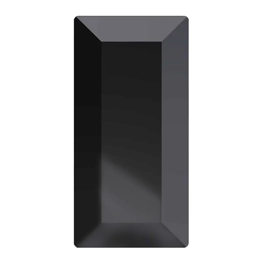Preciosa rhinestones non hotfix Baguette in Jet UNFOILED are flat back crystals that can easily be applied to most surfaces with glue. Preciosa Baguette shaped crystals have an elongated and slim form that resembles the French bread baguette. These rhinestones feature straight sides and pointed tips to emphasize their stretched-out appearance. The Preciosa baguette rhinestones are versatile in their use, as they can be utilized as a standalone crystal or in combination with other shaped crystals to create complex and eye-catching designs.