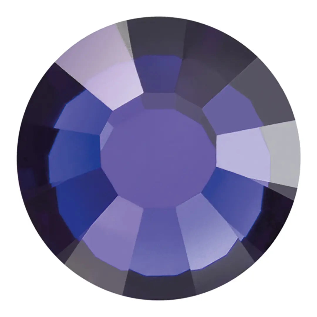 Preciosa rhinestones non hotfix round (MAXIMA) in Dark Indigo are flat back crystals that can easily be applied to most surfaces with glue. Dark Indigo is a deep shade of blue that has a slightly purplish undertone. It is a rich, saturated colour that is darker and more intense than traditional indigo. This colour is often associated with elegance, sophistication, and professionalism. It is a popular choice in fashion and interior design, as it adds a bold and refined touch to any space or outfit. Dark Indigo is a versatile colour that can be used in a range of design styles, from modern and minimalist to traditional and classic. It is often used as an accent colour to add depth and interest to a product or outfit, but it can also be used as a primary colour to create a bold and impactful statement.