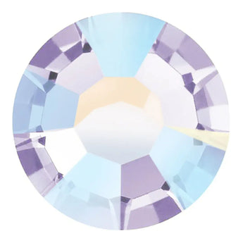 Preciosa rhinestones non hotfix round (MAXIMA) in Mesmera AB are flat back crystals that can easily be applied to most surfaces with glue. Mesmera AB has a magical quality of being able to flicker from a purple colour to green and back again. Under natural light Mesmera AB is a pale purple colour, with similar qualities to that of the colour violet. However under a synthetic light, the colour changes to take on a more green like appearance, making it appear like a completely different coloured crystal. The AB (Aurora Borealis) effect is an iridescent coating that covers the top of the crystal, making it shimmer like a rainbow. The base colour of the crystal can still be seen underneath but there is a noticeable pink and blue shine to it as it hits the light.