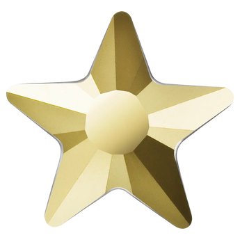 Preciosa hotfix crystals Star in Crystal Aurum are flat back crystals where the reverse side of the crystal has been pre-coated with a heat-sensitive glue. Preciosa Star shaped crystals interpret the classic star aymbol with a refined and contemporary character. Defined by balanced geometry and a clean silhouette, the design captures light in a controlled yet expressive way. The precision-cut facets enhance light reflection, producing a bright, elegant sparkle that works beautifully for both subtle accents and standout decorative details.