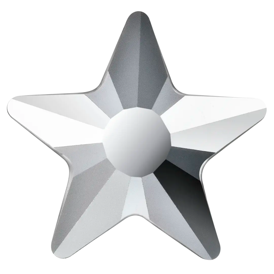 Preciosa hotfix crystals Star in Crystal Labrador are flat back crystals where the reverse side of the crystal has been pre-coated with a heat-sensitive glue. Preciosa Star shaped crystals interpret the classic star aymbol with a refined and contemporary character. Defined by balanced geometry and a clean silhouette, the design captures light in a controlled yet expressive way. The precision-cut facets enhance light reflection, producing a bright, elegant sparkle that works beautifully for both subtle accents and standout decorative details.