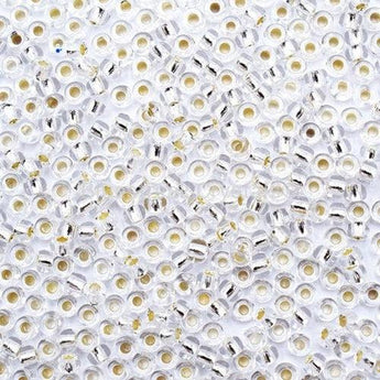 Preciosa Rocailles seed beads in Crystal Silver Lined are made in the Czech Republic and offered in a wide range of colours and sizes. These small round glass beads are uniform in shape and range in size from under a millimeter to several millimeter's.