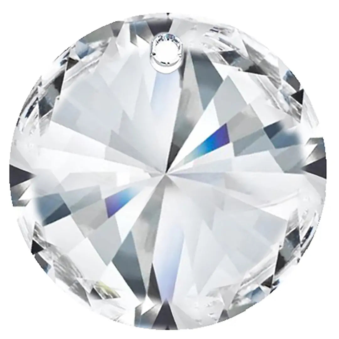 Preciosa pendants Rivoli in Crystal are multi faceted crystals with a thread hole at the top enabling them to be attached to a chain or finding to create a piece of jewellery. Preciosa Rivoli shaped crystals are precision-cut glass stones that have a pointed top and a foiled back to enhance their brilliance and colour. They are round in shape with multiple facets that create a stunning, multi-dimensional sparkle.