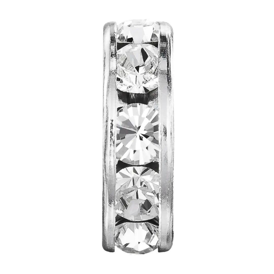 Preciosa Rondelles Round in Silver Plated are small crystals encased in a metal setting that has a thread hold through the centre and are commonly used in jewellery making. These Rondelles made from silver plated metal are available in a range of sizes, making them a versatile component for a wide range of projects.