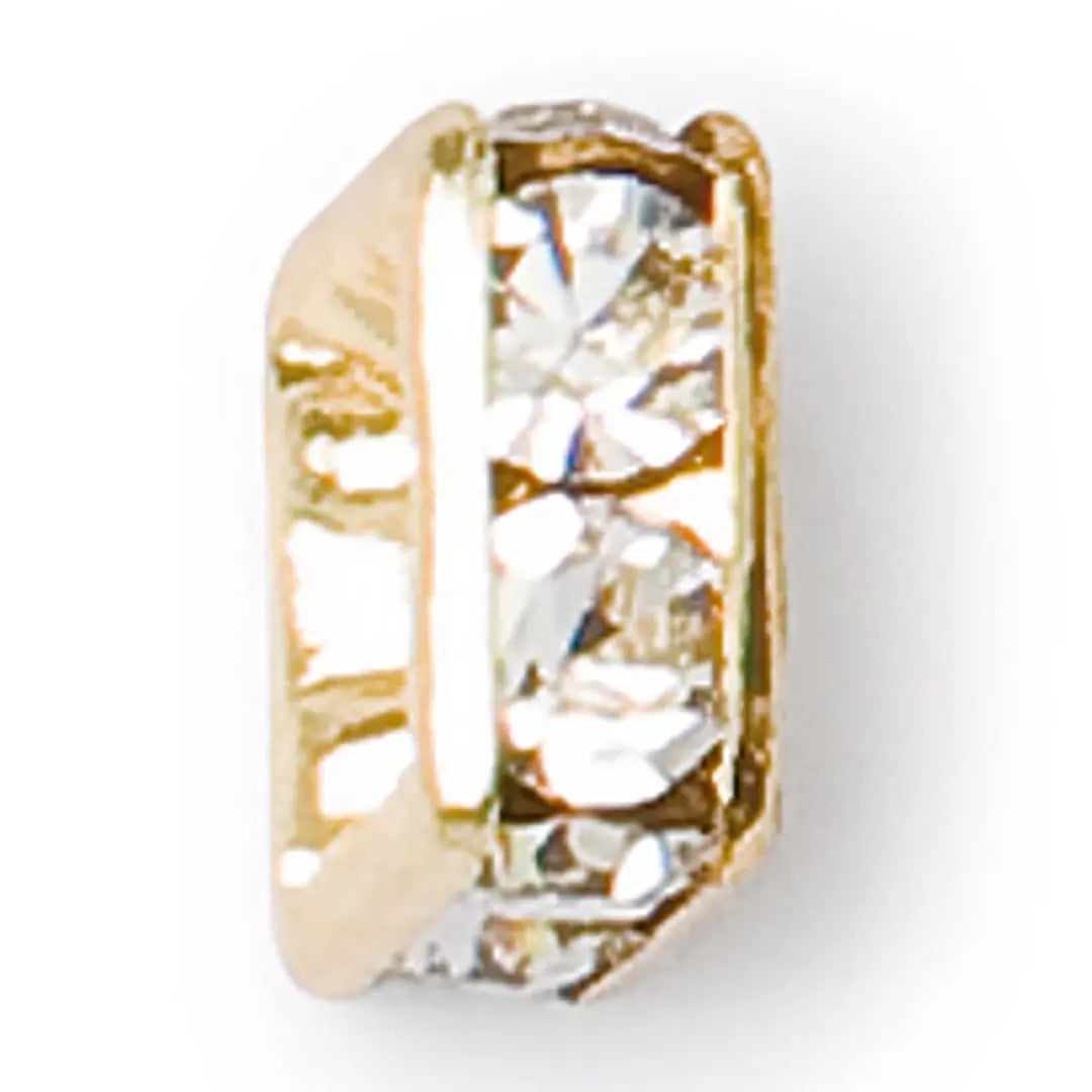 Preciosa Rondelles Square in Gold Plated are small crystals encased in a metal setting that has a thread hold through the centre and are commonly used in jewellery making. These Rondelles made from gold plated metal are available in a range of sizes, making them a versatile component for a wide range of projects.