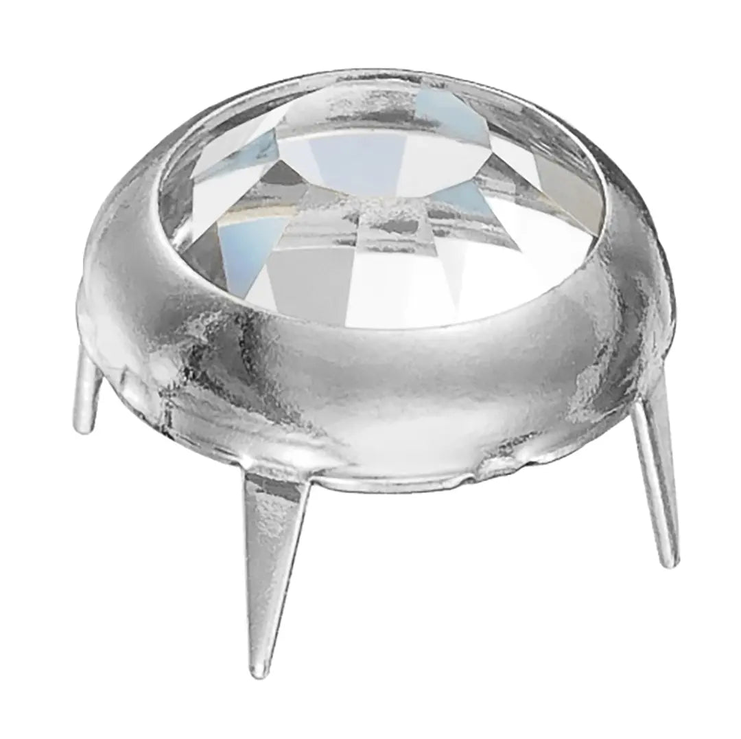 Preciosa Rose Pins in Silver are flat back crystals that are encased in a metal setting. All you need to do is push the pins through your chosen fabric for a long lasting hold, no glue required. Preciosa Rose Pins are applied using an Applicator or Fly Press and Pin Die set. The correct die combination and tools must be chosen accordingly.