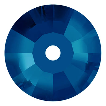 Preciosa sew on crystals Loch Rose in Montana are loose flat backed crystals that come with a thread hole, enabling the crystals to be sewn onto fabric. Preciosa Loch Rose sew-on crystals are round in shape and feature one thread hole located in the middle of the stone. The sew-on has a flat back, which makes it simple to attach to various materials, and its faceted front adds a dazzling and captivating touch to any design.