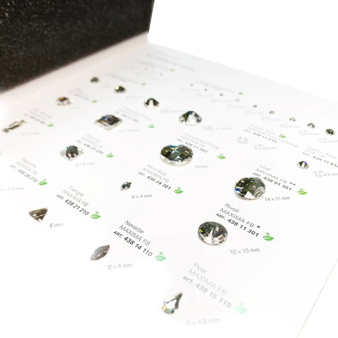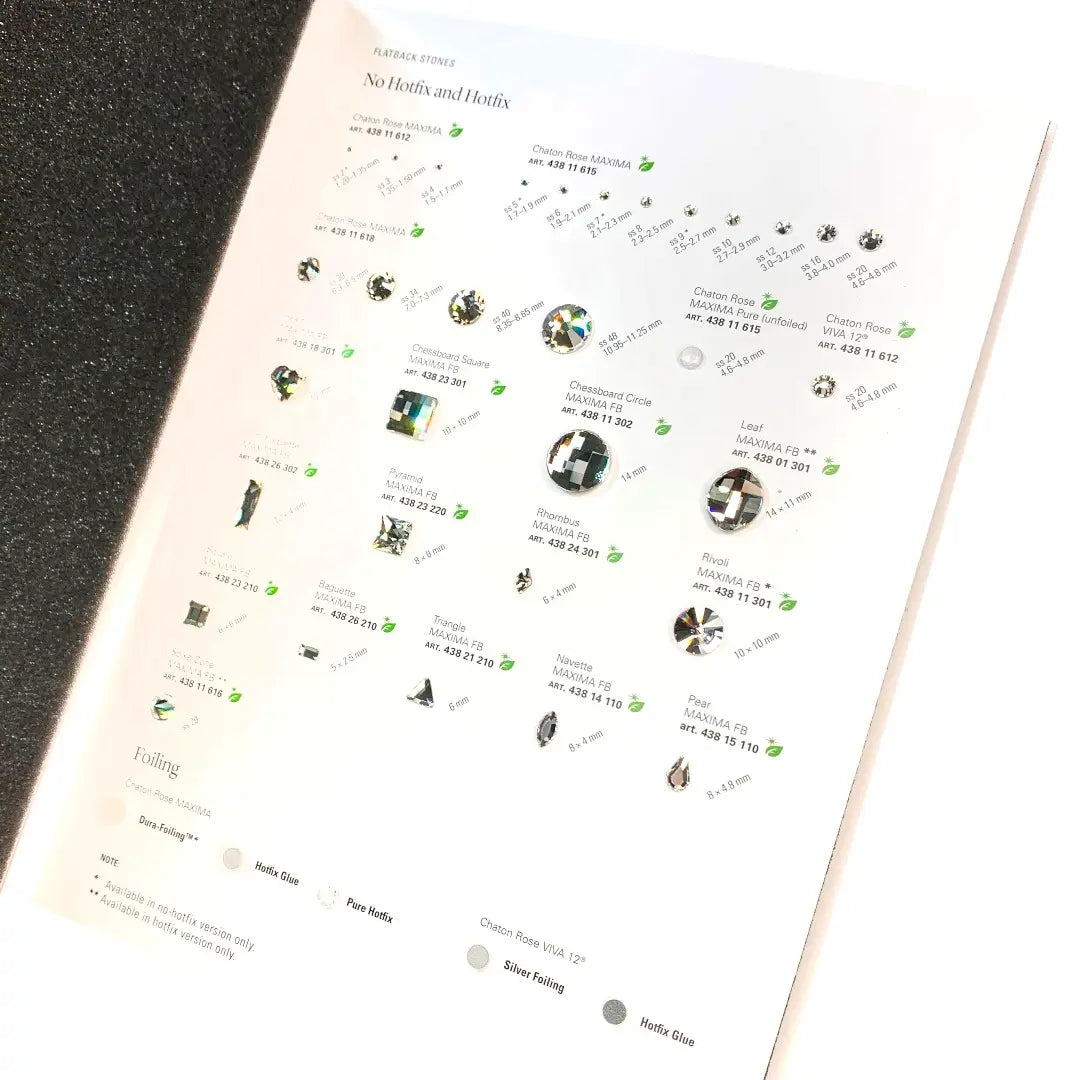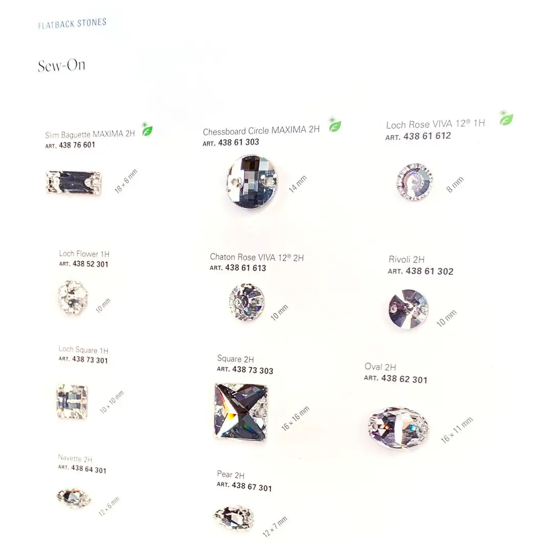 This Preciosa Flatback Crystal colour chart shows sizes and shapes in the Preciosa Flatback Crystals range.