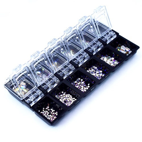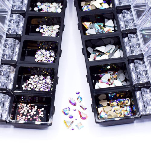 This Ultimate Mix of Preciosa Flatback Crystals in Crystal AB, includes the most popular sizes and shapes in a storage container which measures approximately 13 x 7.5 x 1.3cm.