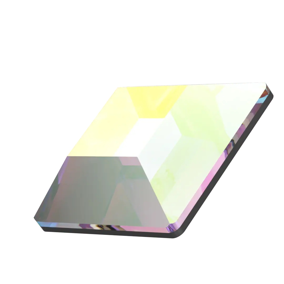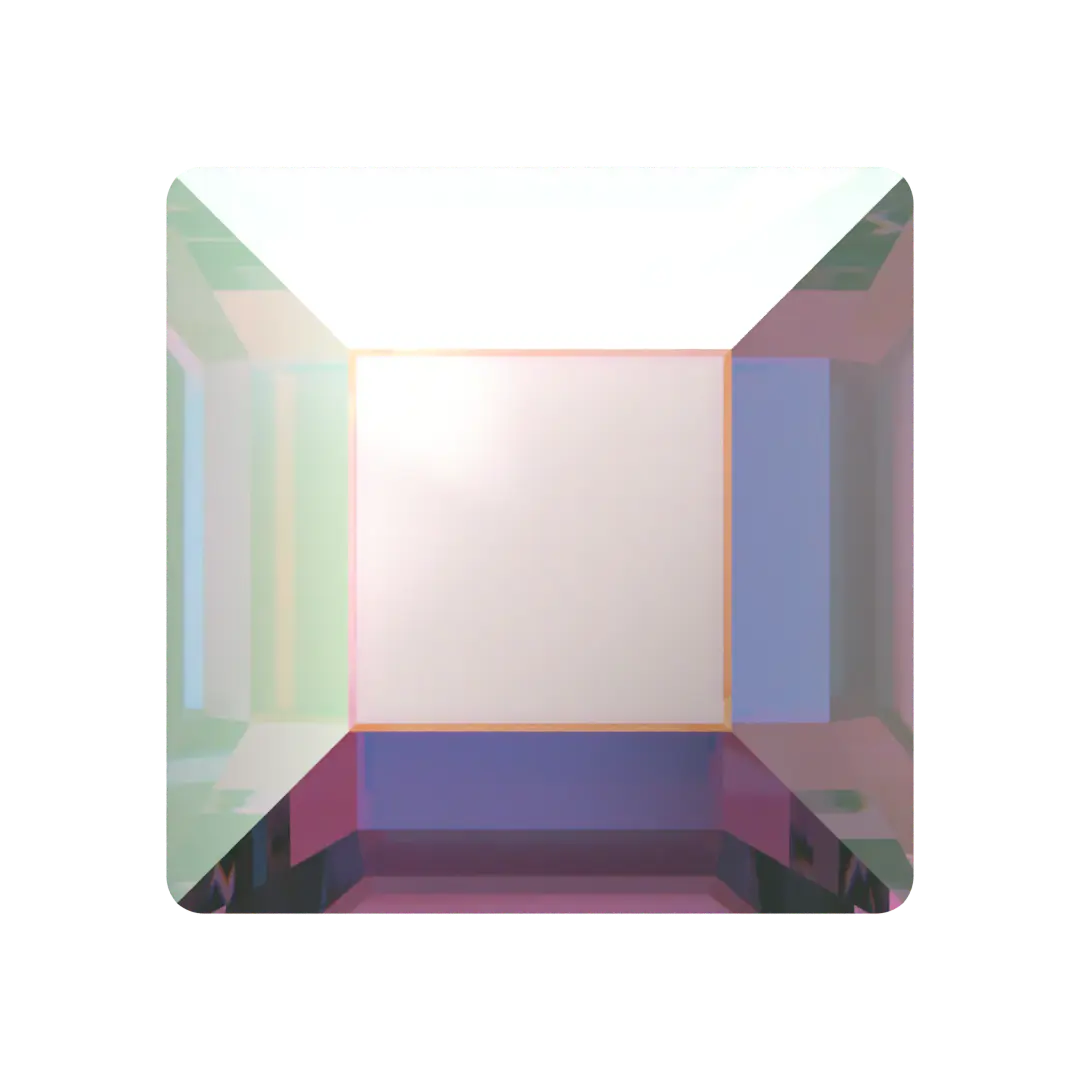 Serinity rhinestones non hotfix Square (2400) in Crystal AB are flat back crystals that can easily be applied to most surfaces with glue. Serinity Square shaped crystals are a type of crystal that features a four-sided square shape with a flat top and simple bevelled edges. The shape's faceting is specifically designed to reflect and refract light, with the slight bevel adding a touch of softness to the overall appearance.