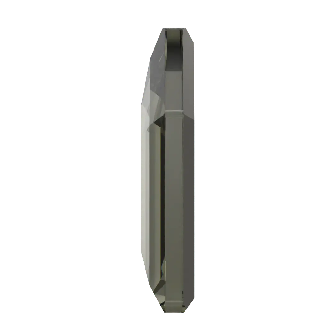 Serinity hotfix crystals Large Pentagon (2774) in Black Diamond are flat back crystals where the reverse side of the crystal has been pre-coated with a heat-sensitive glue. Serinity Large Pentagon flat back crystal is characterized by a pentagonal shape with elongated sides, providing it with a more streamlined and polished look in comparison to a regular pentagon. The crystal exhibits a flat top surface and bevelled edges, with five straight sides meeting at two points.