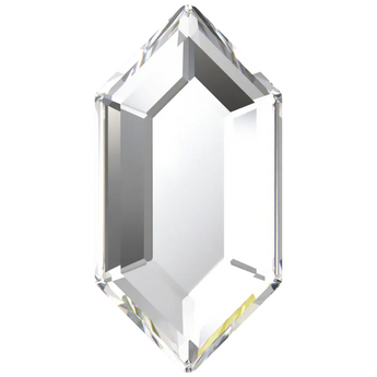 Serinity rhinestones non hotfix Large Hexagon (2776) in Crystal are flat back crystals that can easily be applied to most surfaces with glue. Serinity Large Hexagon flat back crystal showcases an exceptional hexagonal structure with elongated sides, providing it with a more slender and stretched-out appearance compared to a standard hexagon. The crystal exhibits a flat top surface and bevelled edges that catch and reflect light, generating an impressive and sparkling effect.