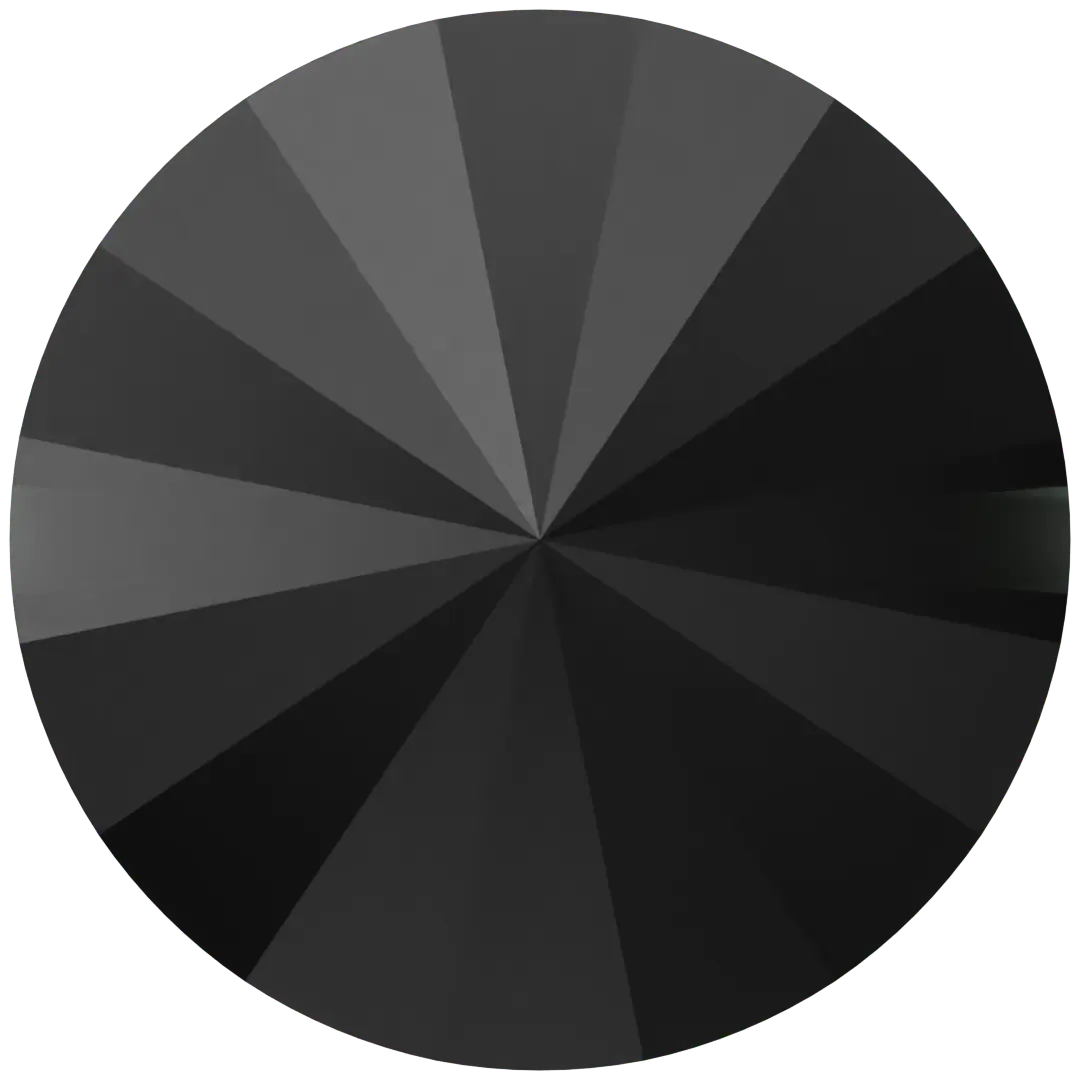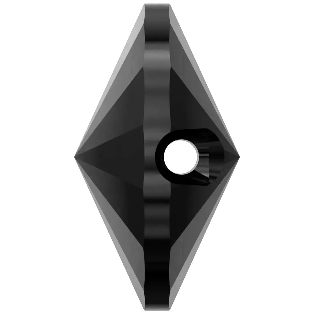Serinity sew on crystals Rivoli Button (3015) in Jet UNFOILED are loose flat backed crystals that come with a thread hole, enabling the crystals to be sewn onto fabric. Serinity Rivoli Button crystals are uniformly cut glass stones with facets that converge to a point. The underside of the crystal is foiled to reflect light and intensify the colour of the stone, creating a brilliant shine.