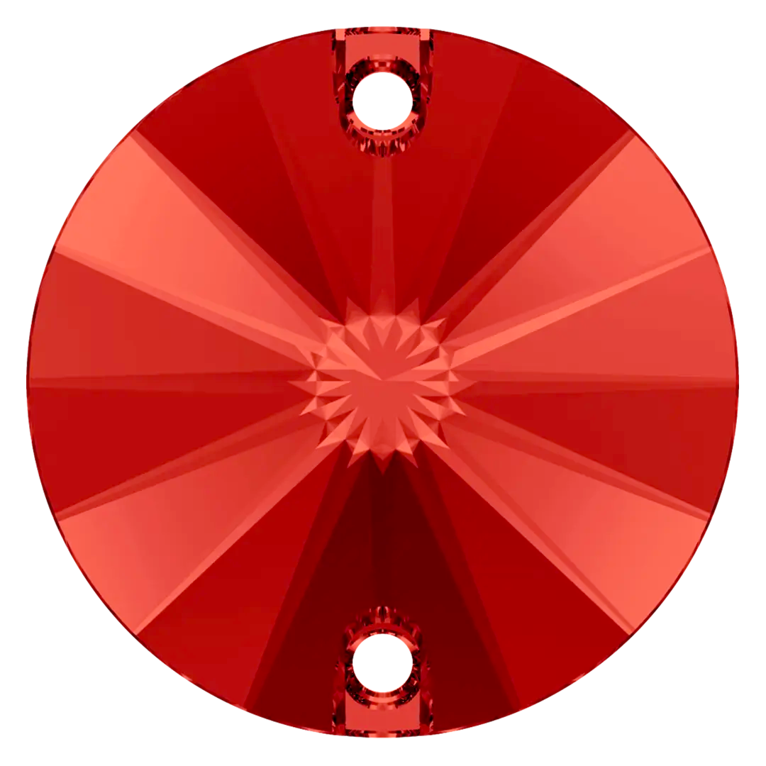Serinity sew on crystals Rivoli (3200) in Light Siam are loose flat backed crystals that come with a thread hole, enabling the crystals to be sewn onto fabric. Serinity Rivoli shaped crystals are uniformly cut glass stones with facets that converge to a point. The underside of the crystal is foiled to reflect light and intensify the colour of the stone, creating a brilliant shine.