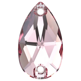 Serinity sew on crystals Peardrop (3230) in Light Rose are loose flat backed crystals that come with a thread hole, enabling the crystals to be sewn onto fabric. Serinity Peardrop shaped crystals feature a tapered traditional pear shape with a rounded bottom and a pointed top, resulting in a symmetrical and elegant appearance. The crystal's faceted surface is carefully cut to create a stunning and brilliant shine that sparkles from every angle.