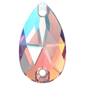 Serinity sew on crystals Peardrop (3230) in Light Rose Shimmer are loose flat backed crystals that come with a thread hole, enabling the crystals to be sewn onto fabric. Serinity Peardrop shaped crystals feature a tapered traditional pear shape with a rounded bottom and a pointed top, resulting in a symmetrical and elegant appearance. The crystal's faceted surface is carefully cut to create a stunning and brilliant shine that sparkles from every angle.