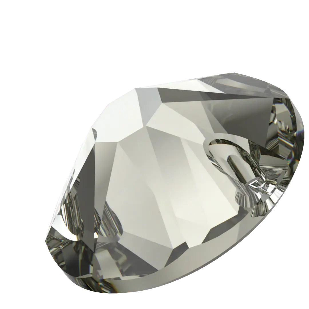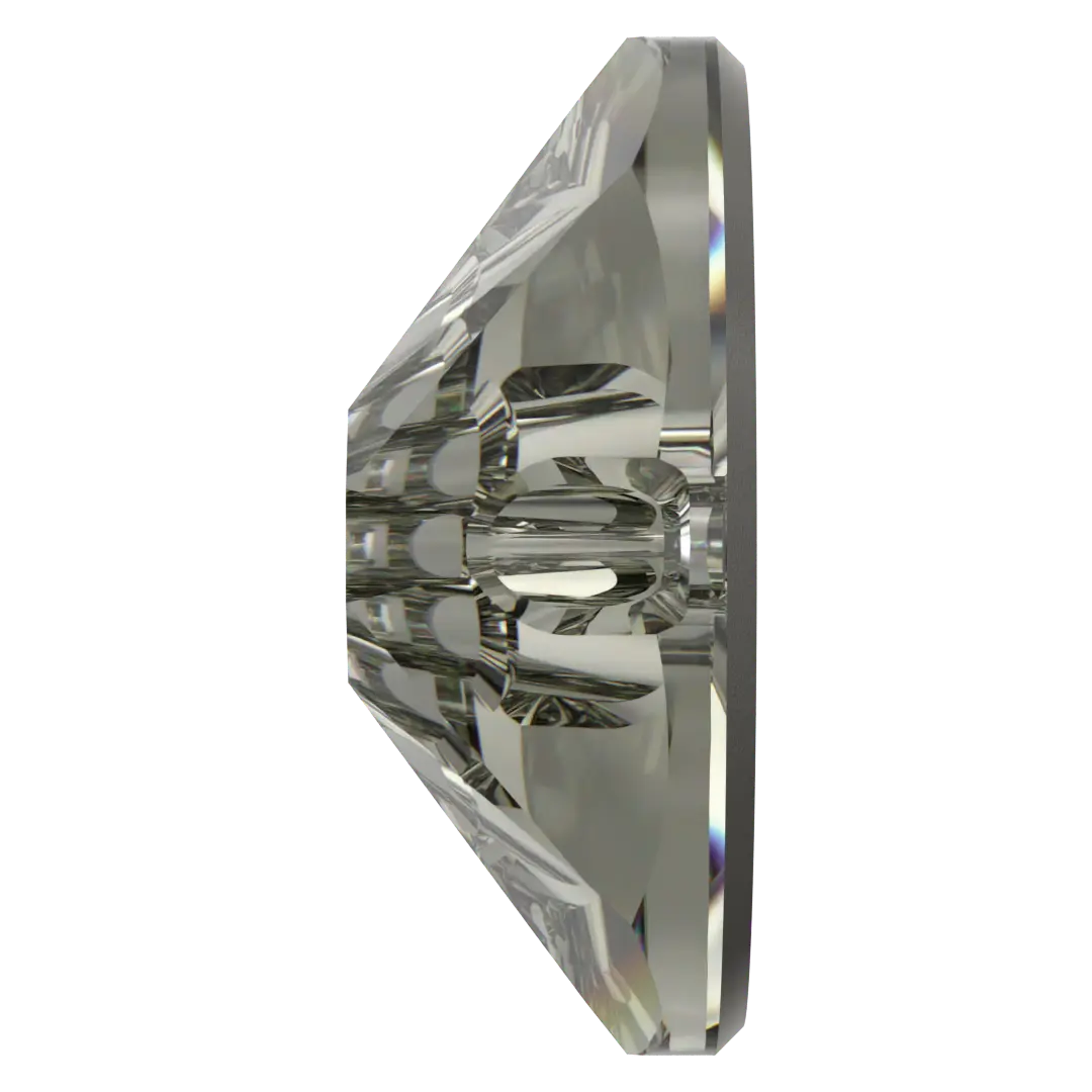 Serinity sew on crystals Round (3288) in Black Diamond are loose flat backed crystals that come with a thread hole, enabling the crystals to be sewn onto fabric. Serinity Round (2 Hole) sew on crystals are a circular crystal component that has two parallel holes positioned at the top and bottom of the stone. The sew-on has a flat back, which allows it to be easily attached to fabric or other materials, while its faceted front creates a sparkling and eye-catching effect.