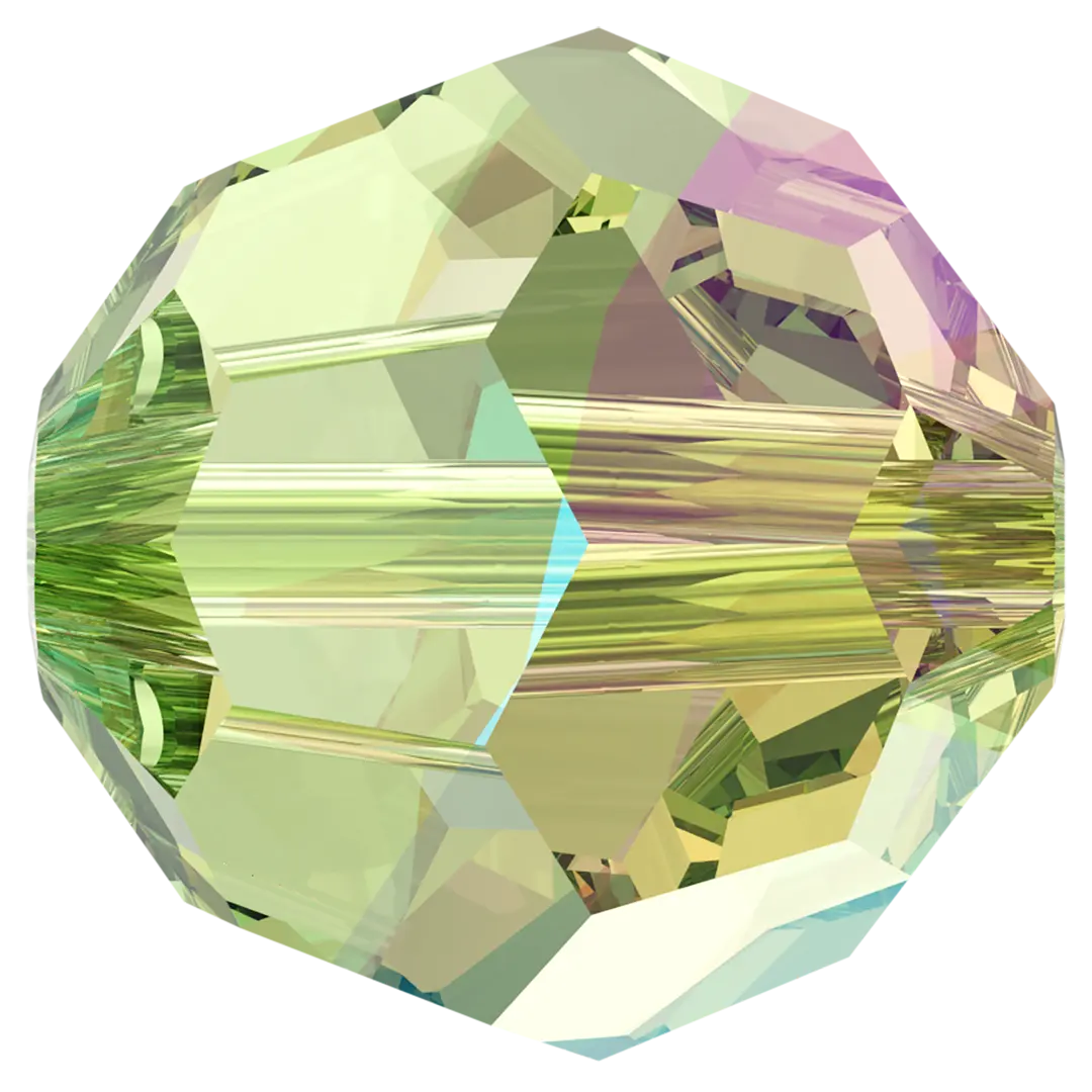 Serinity crystal beads Round (5000) in Peridot Shimmer have a smooth thread hole and are multi-faceted to reflect the light, making them perfect to create bespoke designs. Serinity Round shaped beads are a popular choice in jewellery making due to their versatility, range of sizes, and extensive colour options. These beads are perfectly shaped into a uniform sphere with precise faceting that creates a sparkling effect, reflecting light from various angles.