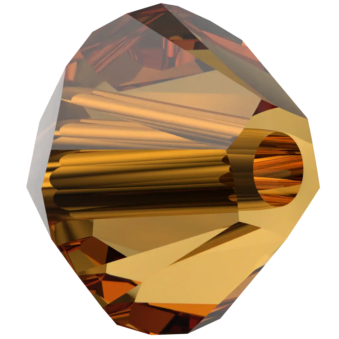 Serinity crystal beads Bicone (5328) in Light Amber have a smooth thread hole and are multi-faceted to reflect the light, making them perfect to create bespoke designs. Serinity Bicone beads are cylindrical in shape and narrow down at both ends to create a distinctive bi-conical shape. The multi-faceted surface of these beads, which tapers towards each end, adds texture, depth, and shine to various jewellery and customized designs.