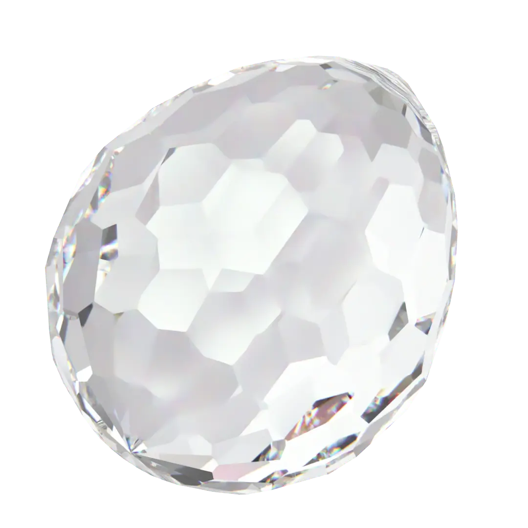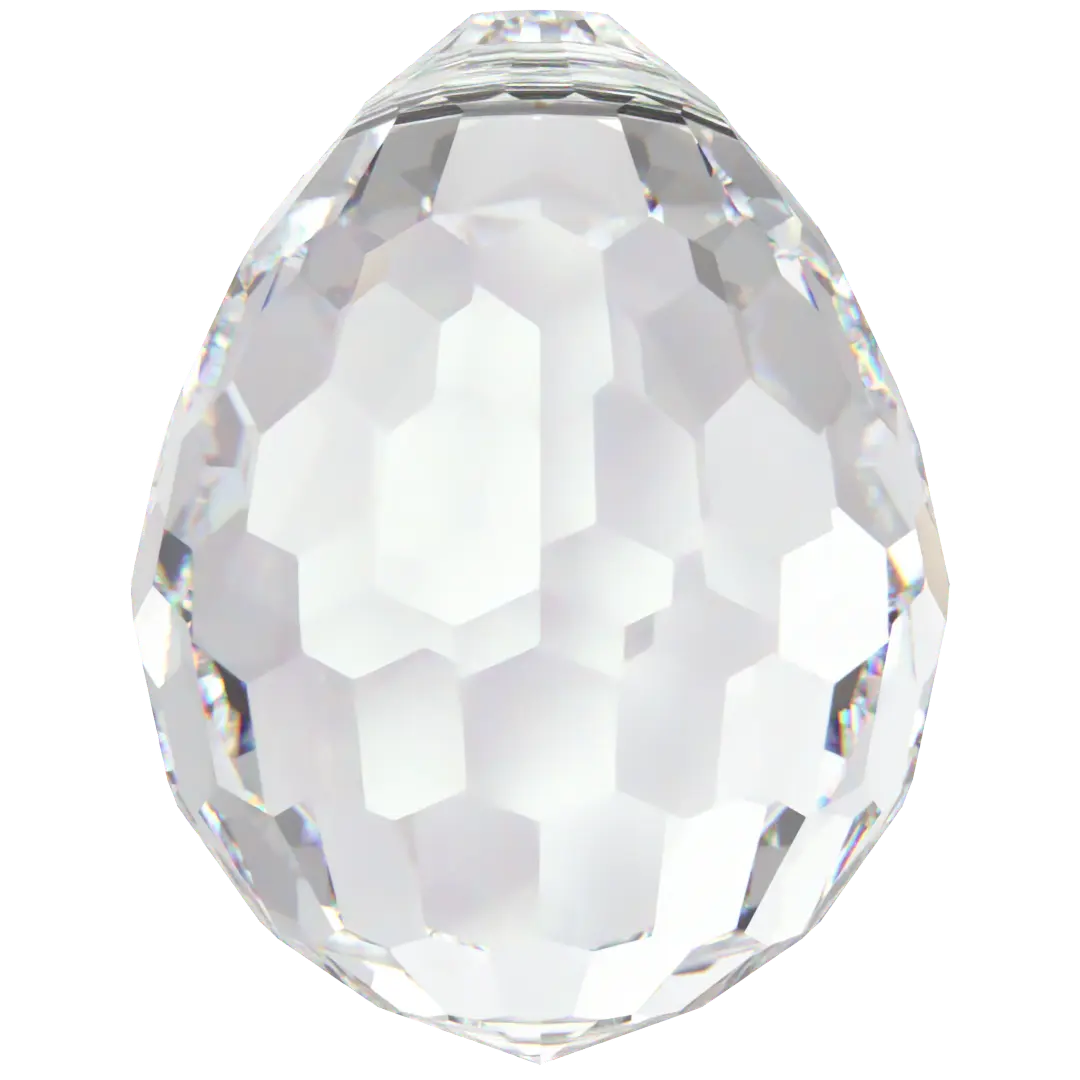 Serinity pendants Oval Disco (6002) in Crystal are multi faceted crystals with a thread hole at the top enabling them to be attached to a chain or finding to create a piece of jewellery. Serinity Oval Disco pendant is a crystal component that boasts an elongated oval shape and a distinctive faceting pattern that produces a mesmerizing disco ball effect. The pendant is composed of numerous small, flat, and circular facets that reflect and refract light in all directions, resulting in a brilliant and sparkling appearance.