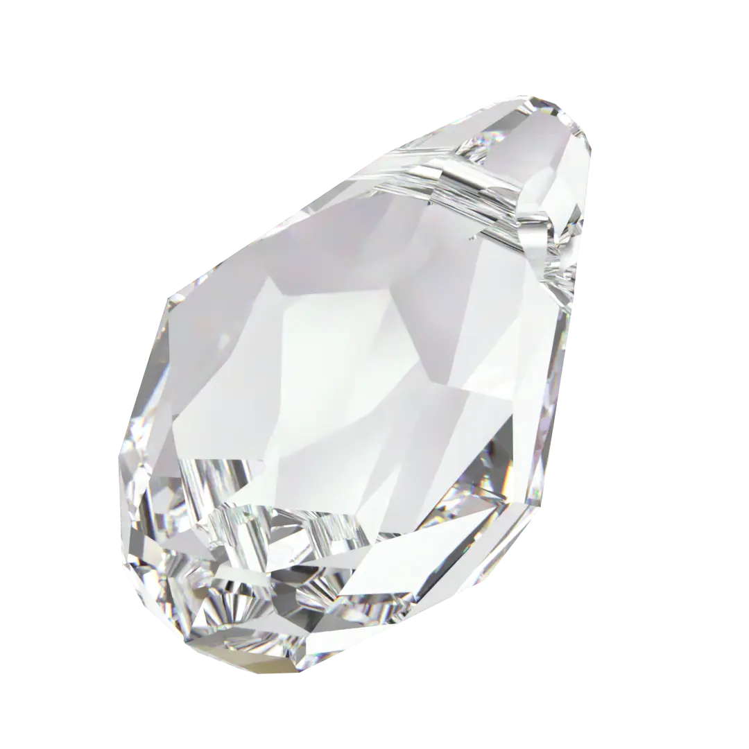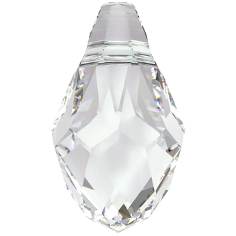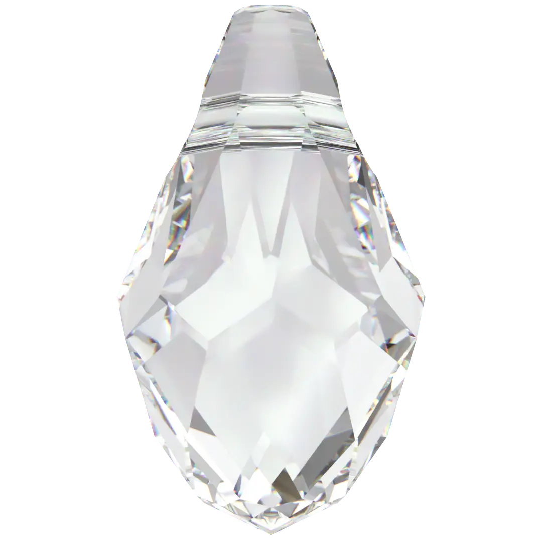Serinity pendants Small Briolette (6007) in Crystal are multi faceted crystals with a thread hole at the top enabling them to be attached to a chain or finding to create a piece of jewellery. Serinity Small Briolette pendants feature a teardrop shape cut in a specific way called the briolette cut. The briolette cut is a type of faceting that involves cutting the crystal into a series of triangular or diamond-shaped facets, which are arranged in a symmetrical pattern around the crystal.
