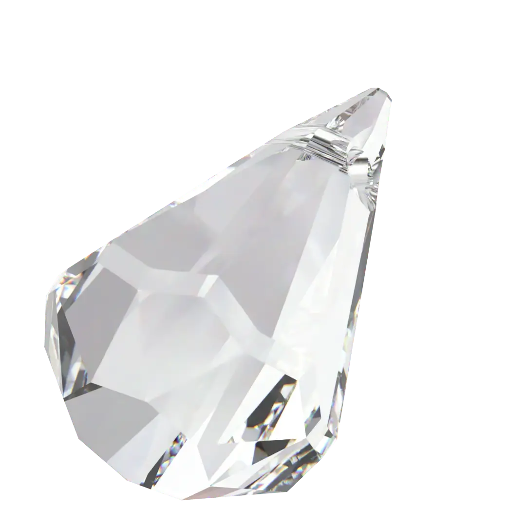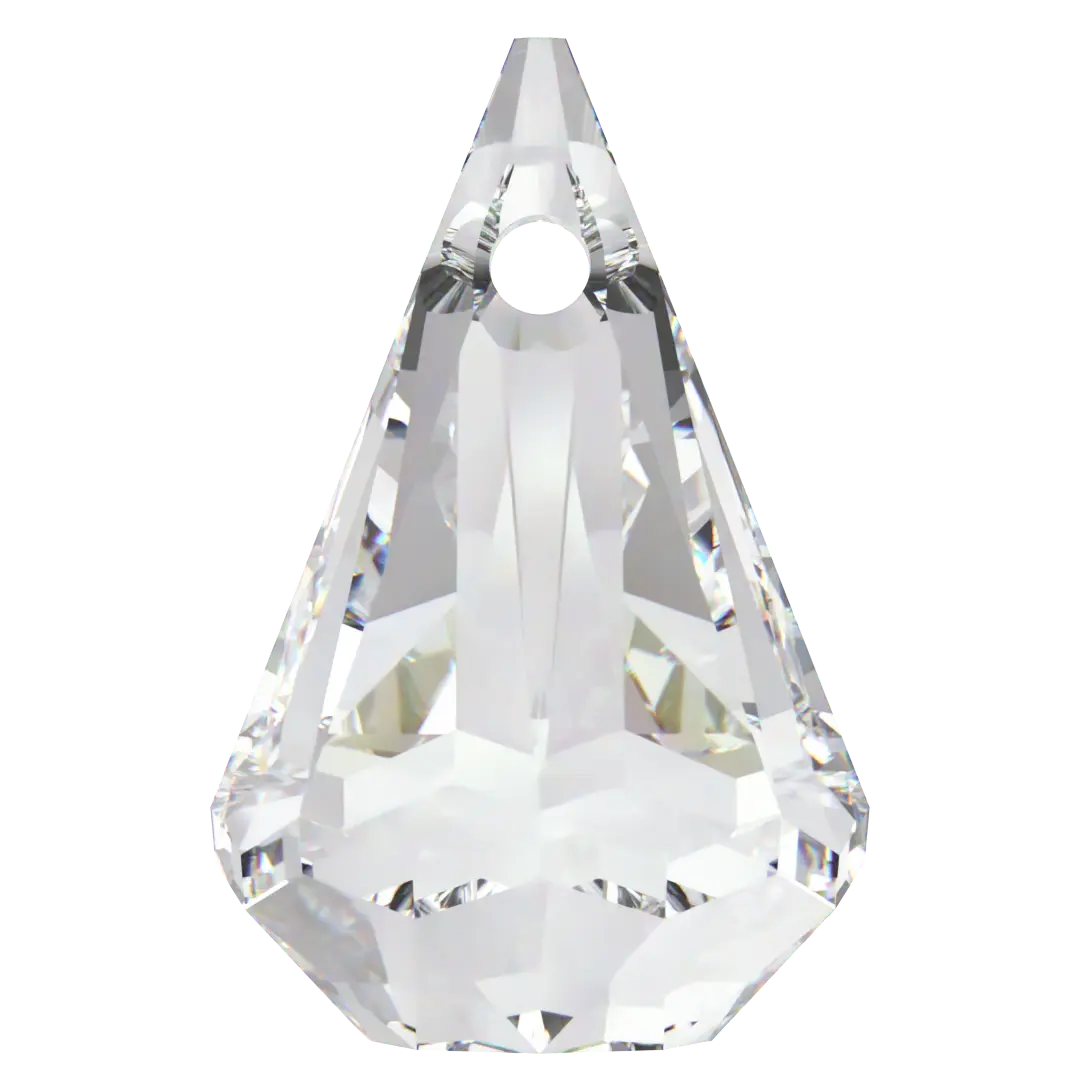 Serinity pendants Raindrop (6022) in Crystal are multi faceted crystals with a thread hole at the top enabling them to be attached to a chain or finding to create a piece of jewellery. Serenity Raindrop pendant has a shape that resembles a raindrop and comes with a hole at the top for easy attachment to a chain or cord. The faceted surface of the pendant creates a stunning interplay of light and reflection.