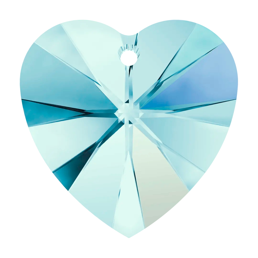 Serinity pendants Heart (6228) in Aquamarine AB are multi faceted crystals with a thread hole at the top enabling them to be attached to a chain or finding to create a piece of jewellery. Serinity Heart shaped crystals have a classic and timeless design, and the symmetrical faceted crystal cut on the front surface of the heart creates a stunning shine that sparkles from all angles, capturing the gaze of anyone who lays their eyes on them.