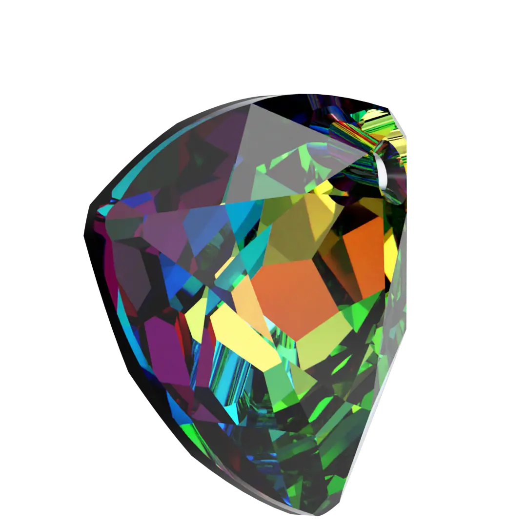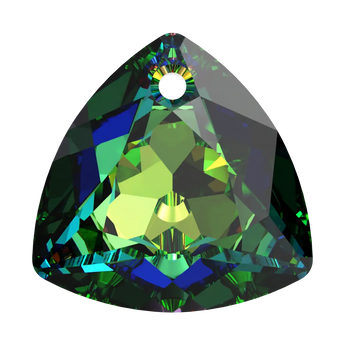 Serinity pendants Trilliant Cut (6434) in Crystal Vitrail Medium P are multi faceted crystals with a thread hole at the top enabling them to be attached to a chain or finding to create a piece of jewellery. Serinity Trilliant Cut refers to a specific type of faceting applied to a crystal. This cut creates a triangular shape with rounded edges and facets arranged in a symmetrical pattern. The result is a brilliant and sparkling crystal with a unique and distinctive shape that is popular in jewellery designs.
