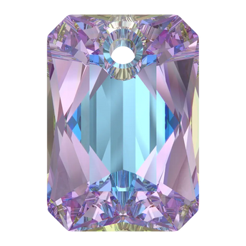Serinity pendants Emerald Cut (6435) in Crystal Vitrail Light P are multi faceted crystals with a thread hole at the top enabling them to be attached to a chain or finding to create a piece of jewellery. Serinity Emerald Cut crystals are crafted to resemble the shape of a precious emerald gemstone, featuring a rectangular shape with cut corners. Its flat top surface is typically faceted, resulting in a distinctive step-like pattern. The Emerald Cut is renowned for its refined and sophisticated look, and it is frequently utilized in luxury jewellery and high-fashion creations.
