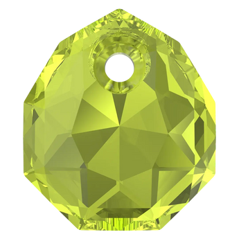 Serinity pendants Majestic (6436) in Citrus Green are multi faceted crystals with a thread hole at the top enabling them to be attached to a chain or finding to create a piece of jewellery. Serinity Majestic crystal has 12 sides, giving the stone a slightly rounded appearance. Its unique shape and precise faceting create an exceptional sparkle and shine, making it a popular choice for statement jewellery pieces. The cut of the crystal is inspired by the natural beauty and symmetry of snowflakes, giving it an elegant and timeless appeal.