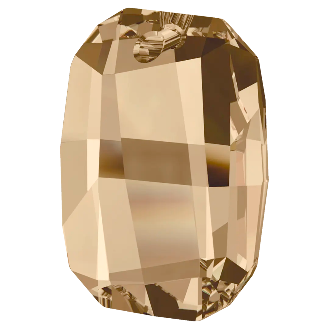 Serinity pendants Graphic (6685) in Crystal Golden Shadow are multi faceted crystals with a thread hole at the top enabling them to be attached to a chain or finding to create a piece of jewellery. Serinity Graphic pendants exhibit a distinctive and contemporary rectangular shape with gently curved sides. They showcase a geometric pattern composed of straight lines, curves, and angles that come together to create an intricate design on the crystals surface.